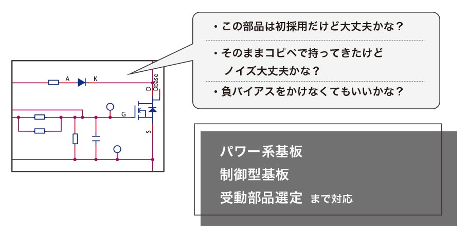 - 社内のデザインレビューを受けたが、今まで社内にノウハウの無い回路のため、そのまま製造することにリスクを感じている。