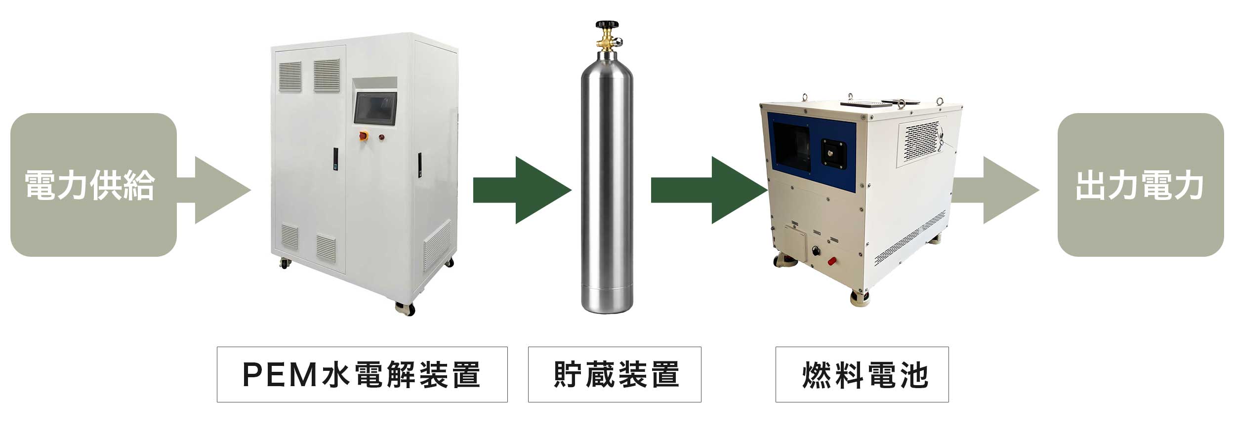 - ・水素製造から貯蔵、発電までの水素エネルギーの全プロセスを、システム化してご提供いたします。