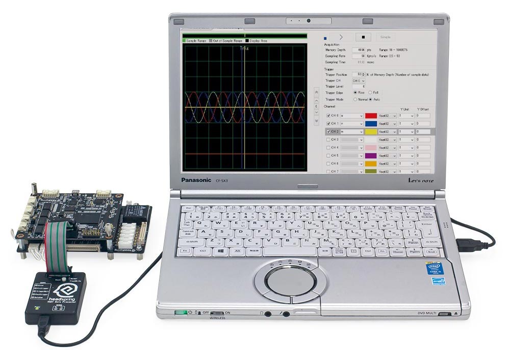 - HSLibを用いた基本的なモータ制御が可能なサンプルソフトを提供。 初学者でもモータの実験・研究がスムーズに行えます