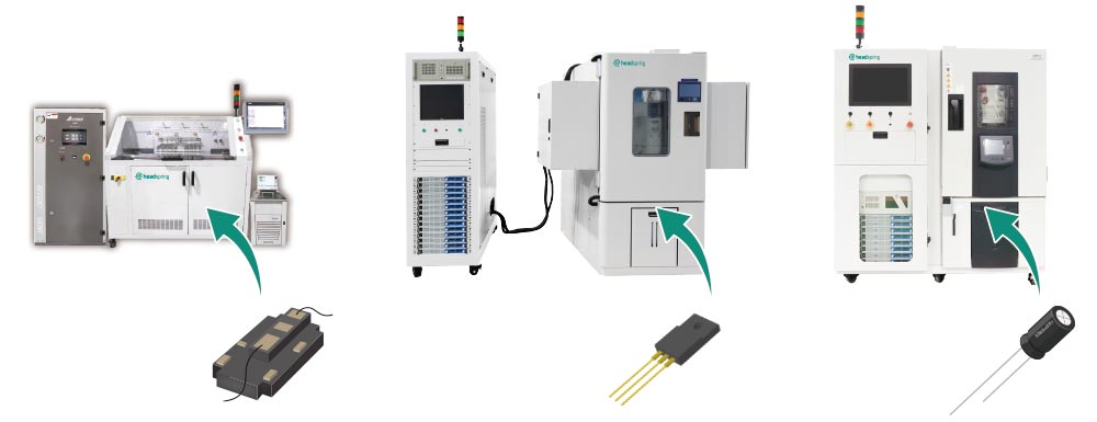 地球温暖化対策の拡大に伴い、車の電動化や、再生可能エネルギーの導入が世界中で急速に拡がっています。そんな中、高効率な電力変換を可能にするキーデバイスとして、パワー半導体デバイスに注目が集まっています。グリーン投資増加の影響もあり、パワーデバイスの市場規模は順調に成長していますが、一方で、自動車業界等での高い品質要求に応えるためには、長期的耐久性や複雑なパッケージの熱特性等を含む「信頼性評価」が必須です。しかしながら、信頼性認証取得のためには、数多くのサンプルを用いた評価が必要で、そのため、パワーデバイスの信頼性評価には、長い時間と多くの労力がかかるのが最大の課題です。私たちヘッドスプリングは、この課題を解決するため、ワンストップでの評価依頼や相談が可能な体制を整え、高効率なバッチ処理や自動評価が可能で十分なコストメリットを出せる評価装置を多数ラインナップしました。これにより、お客様の開発する製品の信頼性評価をより効率よく実施できるようにし、パワー半導体デバイスのさらなる市場拡大に貢献していきます。